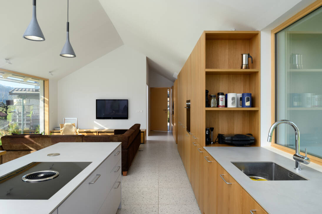 HomepageAktualnoReferenceHouse Mlačevo Predogled Lesena hiša v vlaknocementnem ovoju House Mlačevo | Mlačevo, SloveniaV Mlačevem stoji hiša, topla in domačna na prvi pogled, v svojem bistvu pa racionalna in tehnološka. 3biro jo je zasnoval v proporcih, prilagojenih leseni nosilni konstrukciji, in oblekel v cementne plošče, ki jo ovijajo na najbolj obremenjenih mestih.Na nagnjeni parceli, znotraj vaške zazidave, je biro zasnoval preprost podolgovat volumen, ki pod enotno streho združuje vse potrebne prostore, ki na skromni površini omogočajo kvalitetno bivanje petčlanske družine.Hiša je preprosta v tlorisu: prostori v pritličju – poleg dnevne sobe še predsoba in delovna soba – so organizirani okoli centralnega jedra s stopniščem, sanitarijami in kuhinjo. V nadstropju se jedro ponovi, okoli njega pa so nanizani spalnica in tri otroške sobe.Vlaknocementne valovite plošče Valovitka 5, pokrivajo streho ter fasado, ki kot plašč ovije hišo vse do tal; vlaknocementni ovoj prekinejo le niše, oblečene v les. Zdi se, kot da bi hiša lahko v hipu odvrgla svojo težko sivo obleko in odkrila svojo pravo, leseno naravo.Enotna streha je podaljšana še čez dve zunanji površini: funkcionalno dvorišče in bivalno teraso, obe oblečeni v les. Dvorišče je namenjeno parkiranju, spremlja pa ga priročna lopa, skrita v odebeljeni steni. Streho nad dvoriščem podpira in nosi čipkasta lesena konstrukcija, ki da hiši poseben, ornamentalen izgled.Lahko rečemo, da so arhitekti z uporabo naravnih materialov in dobro premišljeno, enostavno in ekonomično gradnjo, ki bo brez večjih stroškov obnove dolgo kljubovala zobu časa, izkazali veliko odgovornost do družbenih in ekoloških potreb prihodnjih generacij, ter s tem ustvarili resnično trajnostno arhitekturo.Projekt je bil predstavljen tudi s strani slovenske lesarske industrije, kot del razstave „Salon del Mobile“ aprila 2017 v Milanu.IZDELEK: Valovite plošče Valovitka 5 (W177-5,5),1250x920 mm, svetlo sivaUmiestnenieMlačevo, SloveniaArchitekt3 biro, Ljubljana, SlovenijaVlastníkMiha Bajić, Mlačevo, SlovenijaPartnerSora Inženiring d.o.o., Škofja Loka, Slovenija, Esprit d.o.o., Škofja Loka, SlovenijaRok2014FotografMiran Kambič Photography, Radovljica, Slovenija Nazaj na predogled