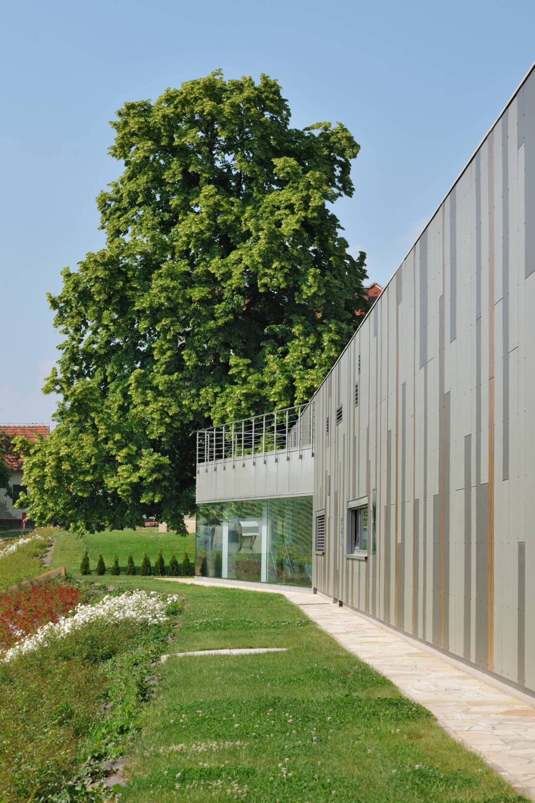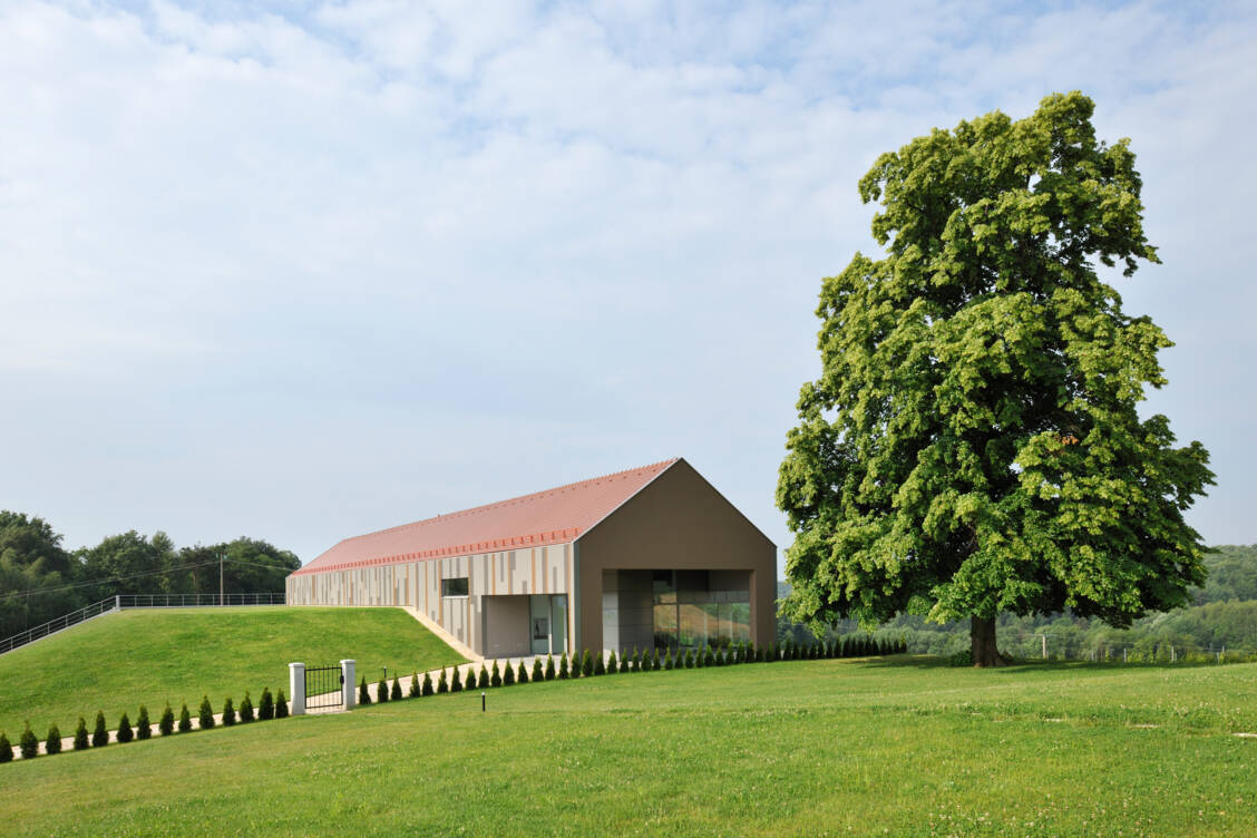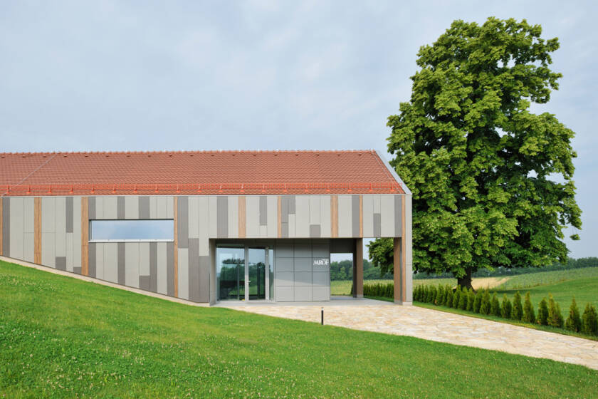 HomepageAktualnoReferenceWinery Marof Predogled Winery Marof | Mačkovci, SloveniaFasadaLargo Swisspearl NobilisKmetijska posest Marof, na vzhodu Slovenije, obstaja že več kot stoletje. Celovita prenova graščinske hiše pod nadzorom Zavoda za varstvo kulturne dediščine jo je vrnila v njen prvotni veličastni videz. Nekdanja gospodarska poslopja so bila nadomeščena z novimi objekti, vključno z novo vinsko kletjo, kjer se proizvaja novo vino Marof. Vinsko klet, ki se razprostira na 40 hektarjih vinogradov, sledi topografiji terena. Njena volumenska zasnova se podrejajo graščini in mogočni lipi, ki stoji kot nekakšen “blažilnik” med obema stavbama.Čeprav arhitektura nove stavbe, podobna hlevu, tvori kontrapunkt eklektični neoklasični graščini, se dve nasprotujoči strukturi vseeno povezujeta prek materialov, še posebej dvojne uporabe opečnate strešne kritine na dvokapnih strehah. Nova stavba se prav tako odziva na širše okolje in se nanaša na vzorec pokončnih opornikov, ki podpirajo trte. To se subtilno odraža v igri nežnih vertikalnih pasov fasadnih plošč Swisspearl v odtenkih rjave in bež vzdolž dolge horizontalne fasade. Oblikovanje pokrajine je omogočilo umestitev različnih podzemnih prostorov, vključno s stiskalnico grozdja, skladišči, kjer se hranijo vinske sode in vino zori, laboratorijem ter polnilnico steklenic. Okolna zemlja pomaga vzdrževati stalno temperaturo 14 ºC. Vidni del stavbe vsebuje stekleni sprejemni prostor, ki gleda na okoliške vinograde, in prostor za degustacijo vina.UmiestnenieMačkovci, SloveniaArchitektStudio Kalamar d.o.o., Ljubljana, SlovenijaVlastníkPanvita Marof d.o.o., Mačkovci, SlovenijaPartnerKARBA mge d.o.o., Ljutomer, SlovenijaRok2009FotografMiran Kambič Photography, Radovljica, Slovenija Nazaj na predogled